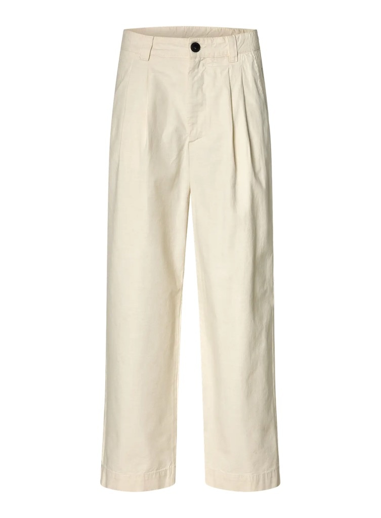 AnnarrAnrralf pant ecru €130,00 Incl. btwSize: *3031323334Toevoegen aan winkelwagenGratis verzending Vanaf €150,-Beschrijving+ Mid waist + Zip fly with button fastening + Belt loops + Side and back pockets + Pleated details + Loose fit + Model Height: 187 cm, Model Size: 33 + 85% Cotton, 15% Linen