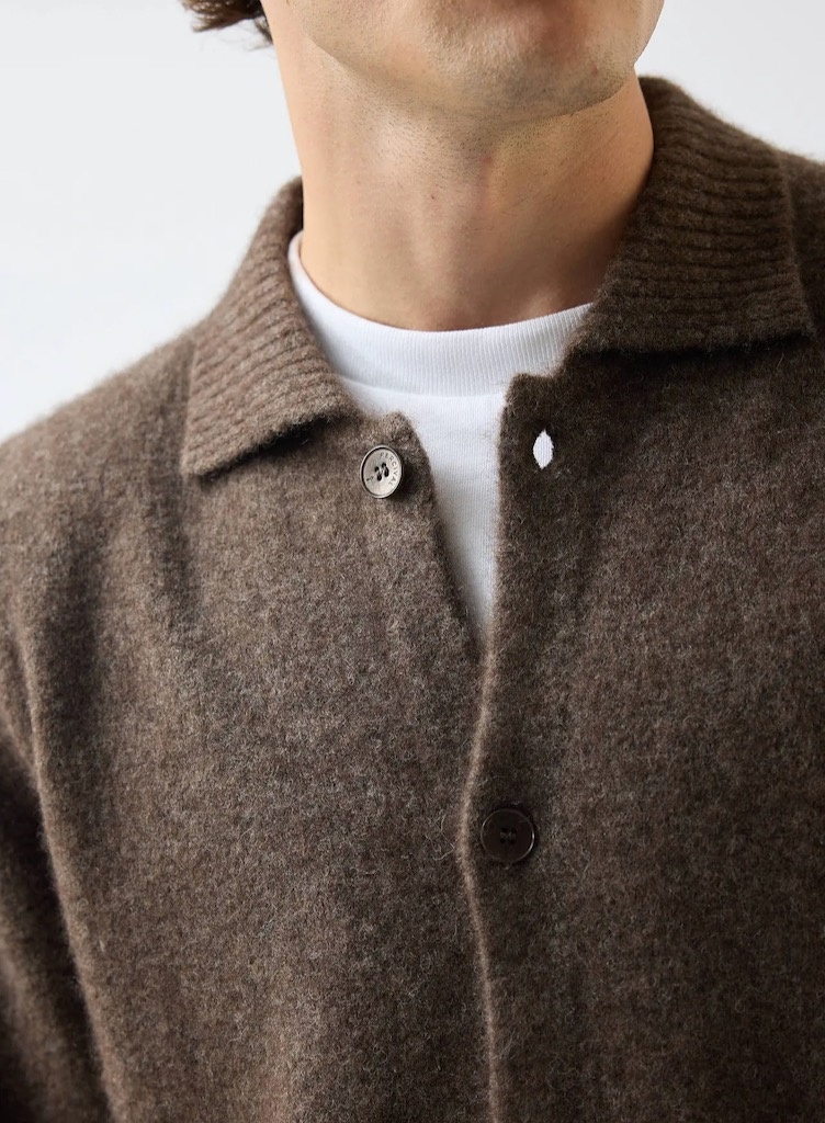 PercivalArchive cardigan brown €299,00 Incl. btwSize: *MLToevoegen aan winkelwagenGratis verzending Vanaf €150,-Beschrijving+ Knitted cardigan in brown + Super-soft wool blend 48% Yak, 30% Nylon, 20% Wool, 2% Spandex + Ribbed neck collar + Custom Percival buttons down the front