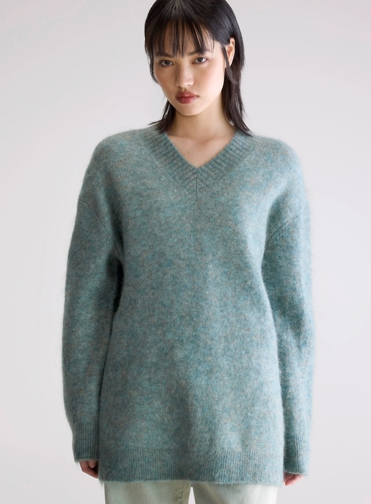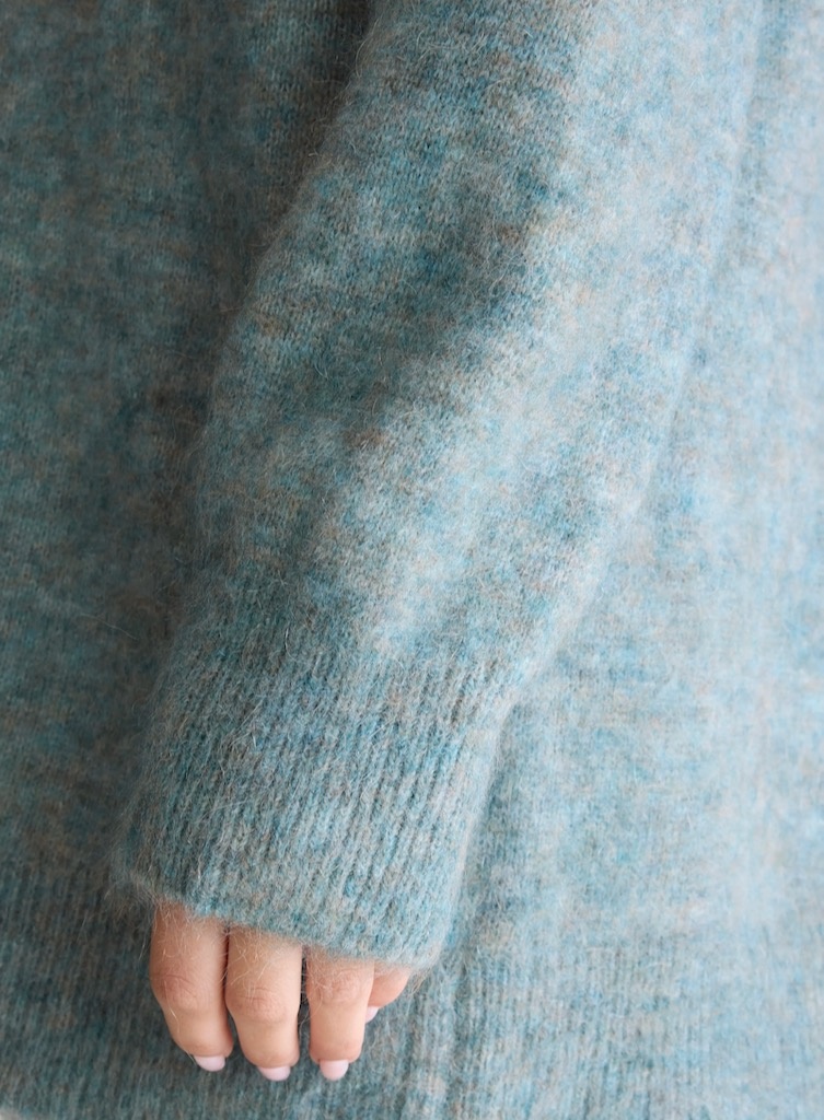 BelleroseAuris trui blue €249,00 Incl. btwSize: *XXs/XSS/ML/XLToevoegen aan winkelwagenGratis verzending Vanaf €150,-Beschrijving+ Oversized pasvorm: Kies je gebruikelijke maat voor de beoogde look of maat kleiner voor een meer getailleerde stijl. + V-hals + Lang + Geribde manchetten en zoom + 5% Elastaan / 34% Kid mohair / 34% Wol / 27% Polyamide / Nylon