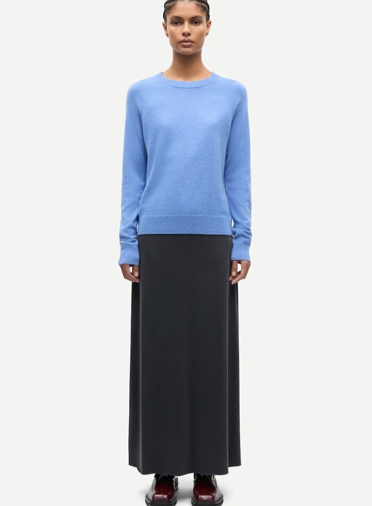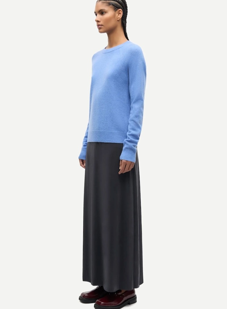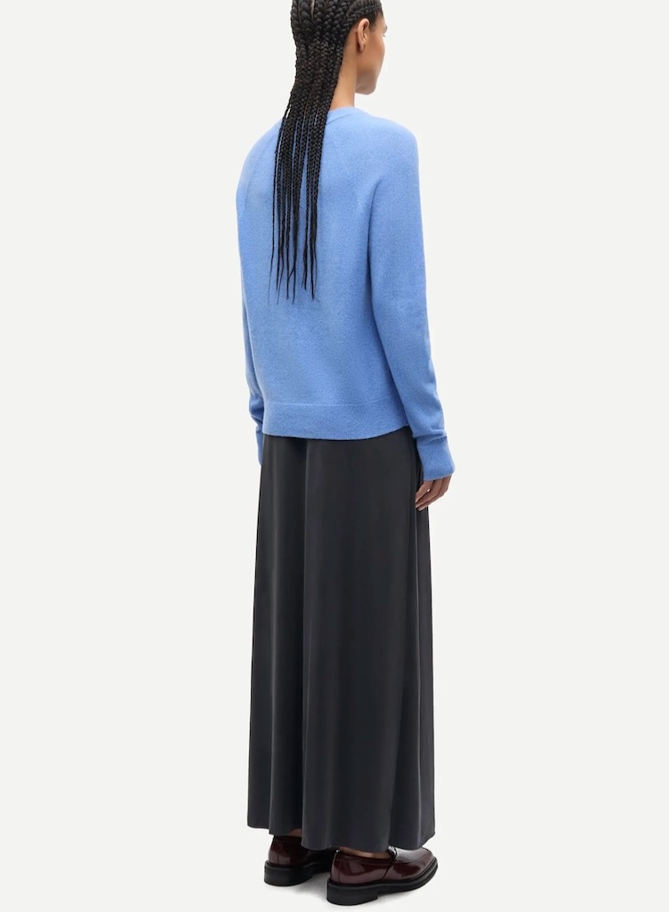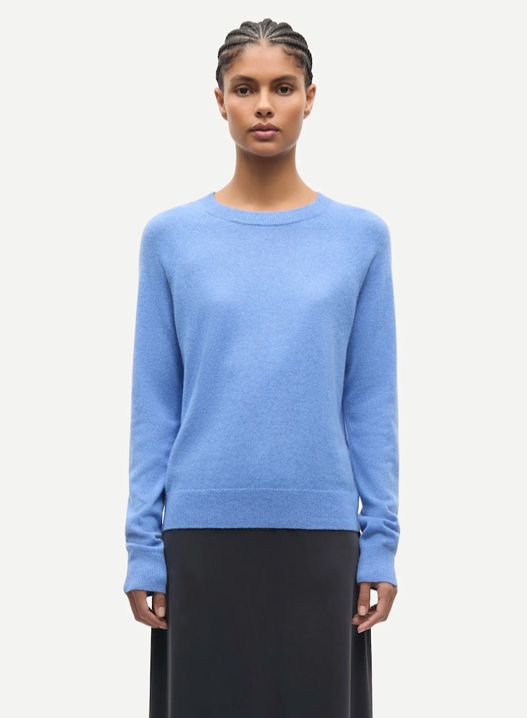 Samsoe SamsoeBoston trui blue €230,00 Incl. btwSize: *SMLToevoegen aan winkelwagenGratis verzending Vanaf €150,-Beschrijving+ Sweater with a loose fit + Raglan sleeves + Rib-knitted detailing at crewneck, cuffs and hem + Knitted with a fine gauge + The model is 175 cm and is wearing size S + 100% Cashmere
