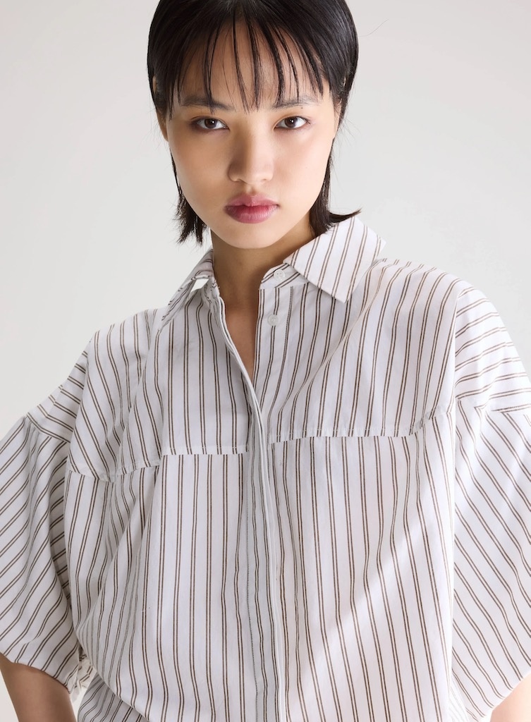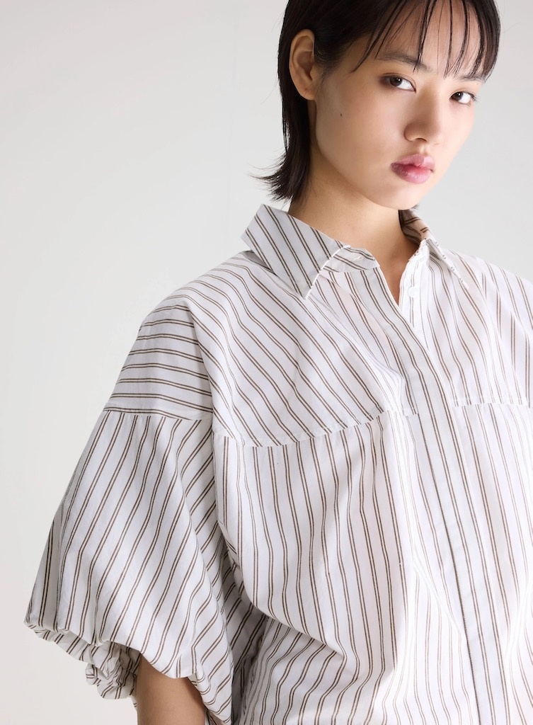 BelleroseCassy blouse stripe €129,00 Incl. btwSize: *SMLToevoegen aan winkelwagenGratis verzending Vanaf €150,-Beschrijving+ Classic shirt collar + Dropped shoulders + Balloon sleeves + Hidden front button placket + Front yoke seam + Back yoke seam + Cropped back + 100% cotton