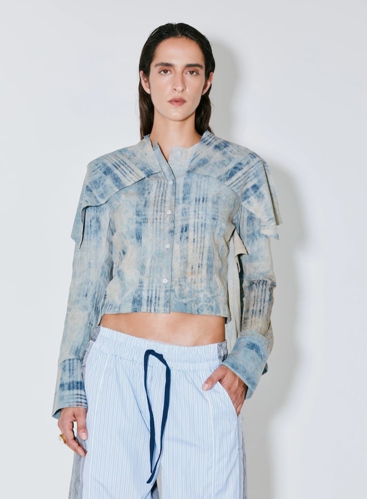 Facon JacminConner washed blue check shirt €309,00 Incl. btwSize: *363840Toevoegen aan winkelwagenGratis verzending Vanaf €150,-Beschrijving+ Top with long sleeves + Extra fabric panels for sculptural volume + Designed with experimental tailoring + Cut to a relaxed silhouette + 100% CO