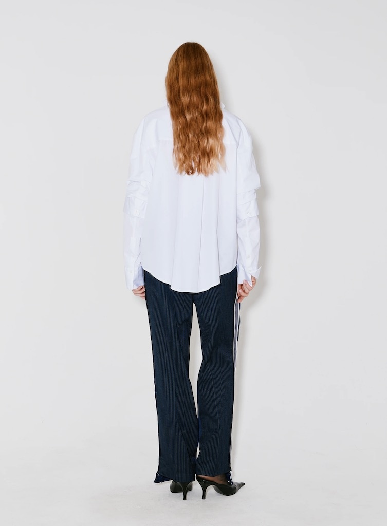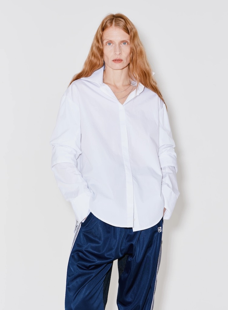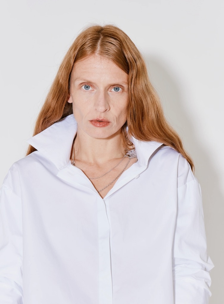 Facon JacminCosmo shirt wit €315,00 Incl. btwSize: *SMLToevoegen aan winkelwagenGratis verzending Vanaf €150,-Beschrijving+ Trompe-l’œil shirt + White Italian poplin + Layered sleeve construction that creates the illusion of two shirts worn together + Sharp & high collar + Button front closure + Curved hem + Relaxed, oversized silhouette + 100% Cotton