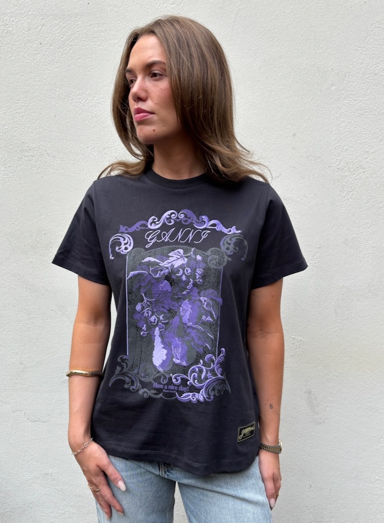 GanniDamask t-shirt €165,00 Incl. btwSize: *SMLXLToevoegen aan winkelwagenGratis verzending Vanaf €150,-Beschrijving+ Round neckline + Short sleeves + Damask print graphic + Embroided on logo and print + GANNI logo + 100% organic cotton