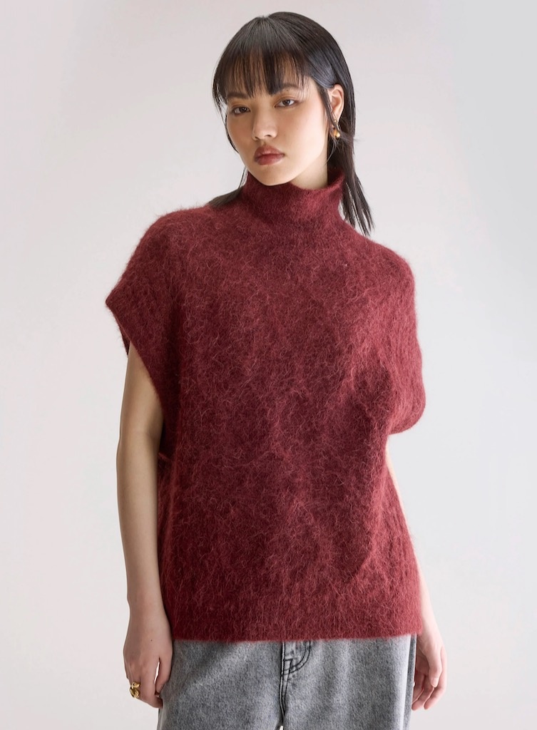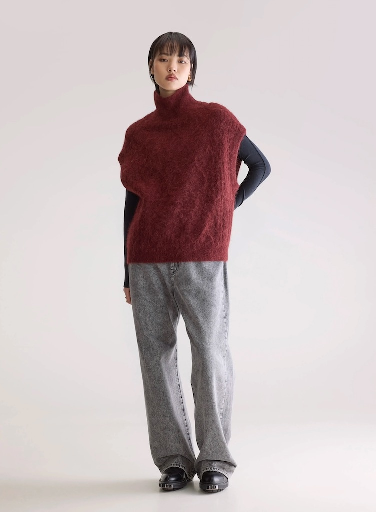 BelleroseDarti knit brown €179,00 Incl. btwSize: *SMToevoegen aan winkelwagenGratis verzending Vanaf €150,-Beschrijving+ Klassieke pasvorm + Turtleneck + Mouwloos + Kabelgebreid patroon aan de voorkant + Geribde hals, armsgaten en taille + 55% Alpaca / 24% Acryl / 2% Elastaan / 19% Polyamide / Nylon