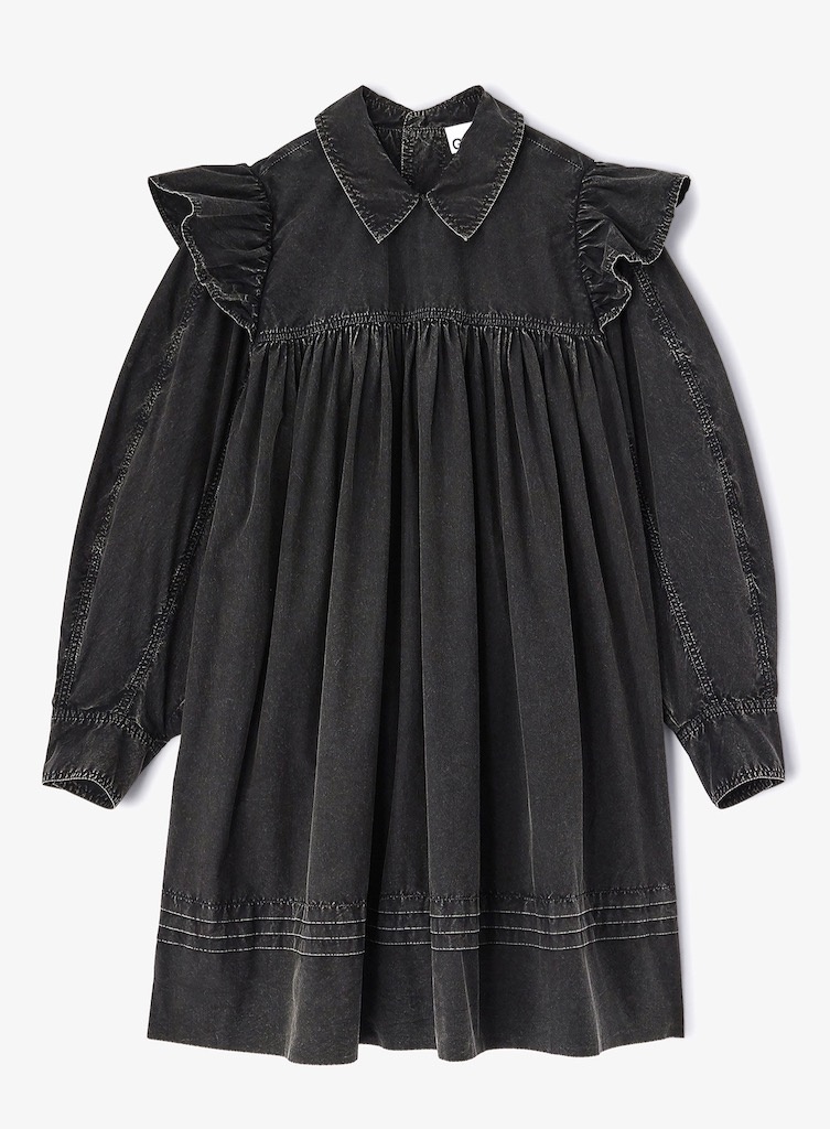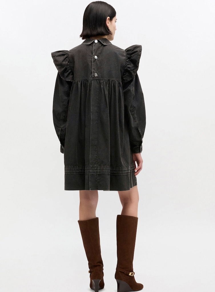 GanniDyed cotton mini dress frill black €295,00 Incl. btwSize: *363840Toevoegen aan winkelwagenGratis verzending Vanaf €150,-Beschrijving+ Classic collar + Frill sleeve detail + Ruching + Cuffs + Button closure at back + 100% Organic Cotton + Model is 175 cm and wears a size 36