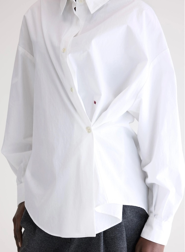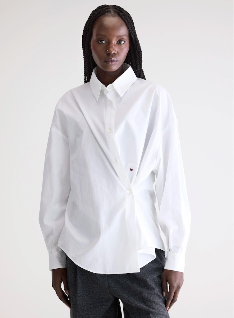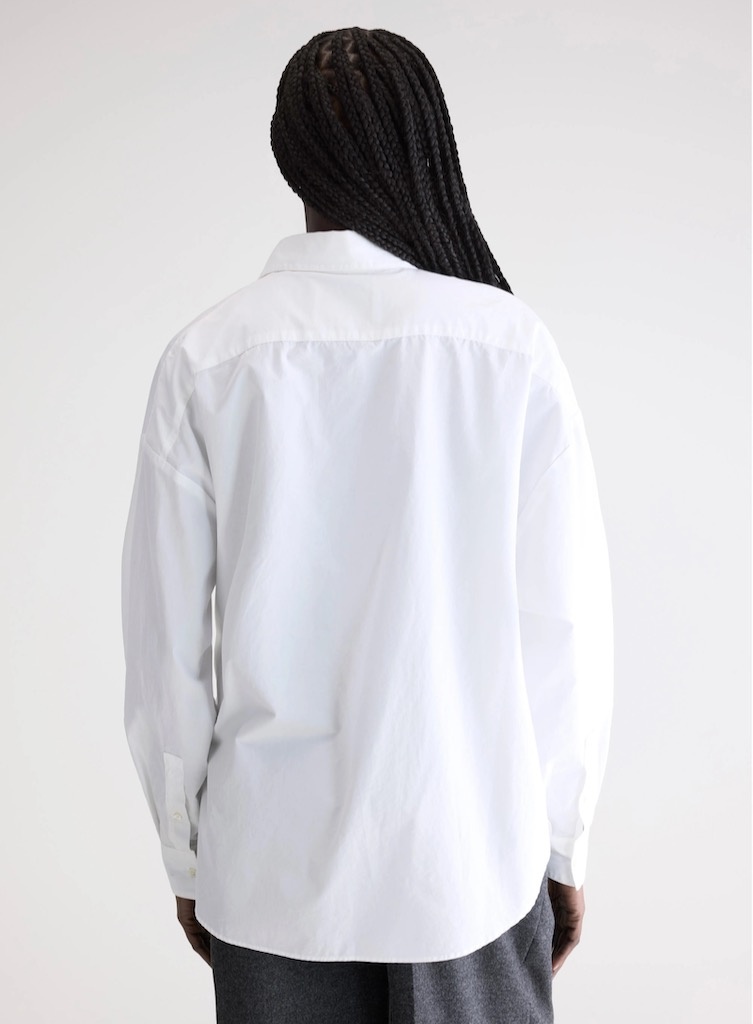 BelleroseGillian white blouse €149,00 Incl. btwSize: *S/ML/XLNiet op voorraadGratis verzending Vanaf €150,-Beschrijving+ Oversized fit + Dropped shoulders + Classic point collar with a button-down front + Embroided "blr" on the front + Two side buttons to adjust the fit + 100% cotton