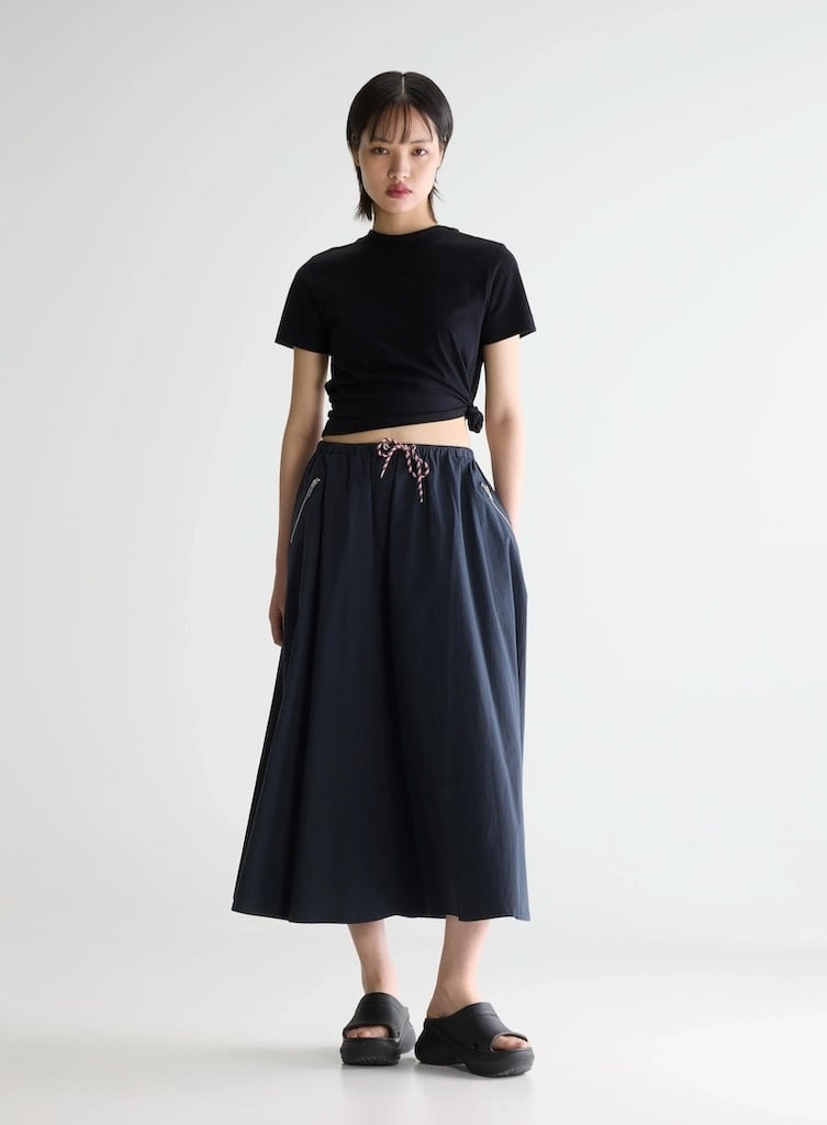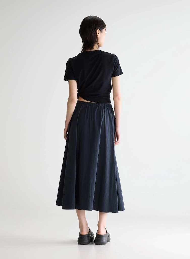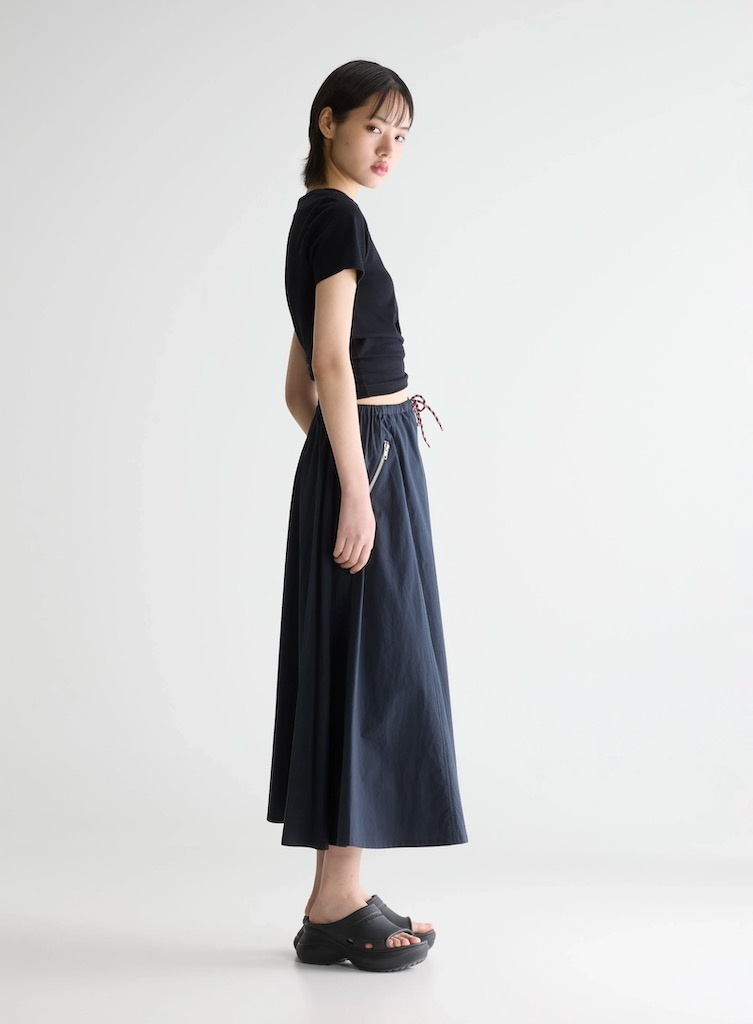 BelleroseHarlin skirt captain €169,00 Incl. btwSize: *363840Toevoegen aan winkelwagenGratis verzending Vanaf €150,-Beschrijving+ A-line midi skirt + Relaxed fit + Elasticated waistband with burgundy-and-white drawstring + Side zippered welt pockets + Unlined + Clean hem finish + Lightweight, structured drape + 100% Cotton