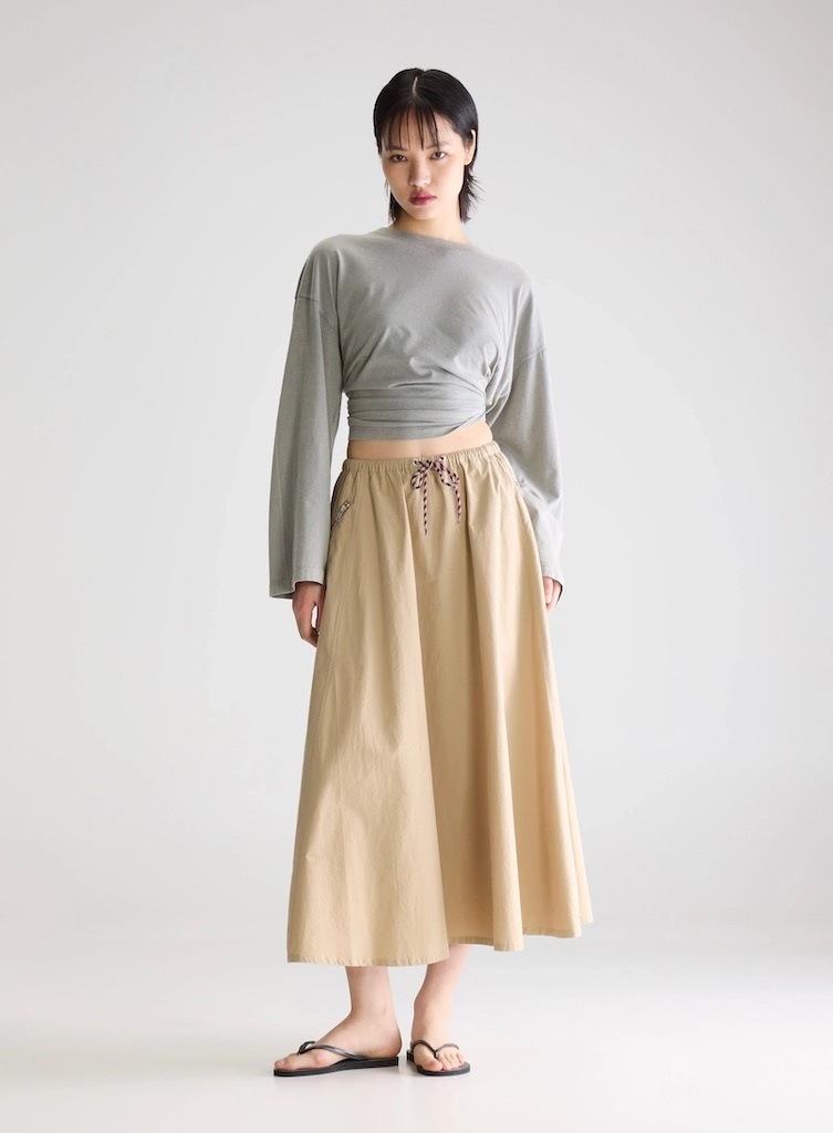 BelleroseHarlin skirt clay €169,00 Incl. btwSize: *363840Toevoegen aan winkelwagenGratis verzending Vanaf €150,-Beschrijving+ A-line midi skirt + Relaxed fit + Elasticated waistband with burgundy-and-white drawstring + Side zippered welt pockets + Unlined + Clean hem finish + Lightweight, structured drape + 100% Cotton