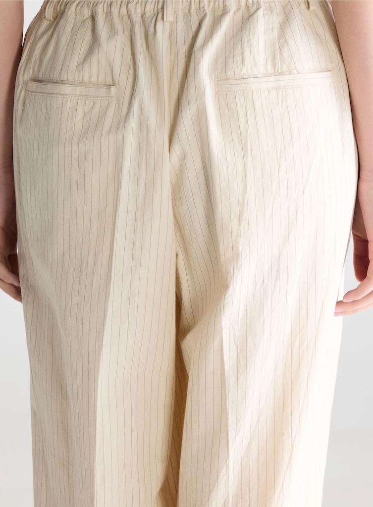 BelleroseJilo pants Washi stripe €199,00 Incl. btwSize: *3840Toevoegen aan winkelwagenGratis verzending Vanaf €150,-Beschrijving+ Relaxed fit + Wide-tapered leg silhouette + Full length + Fully elasticated waistband + Side seam pockets + Welt pockets at the back + Vertical pinstripe pattern + 77% Cotton / 7% Hemp / 16% Kapok