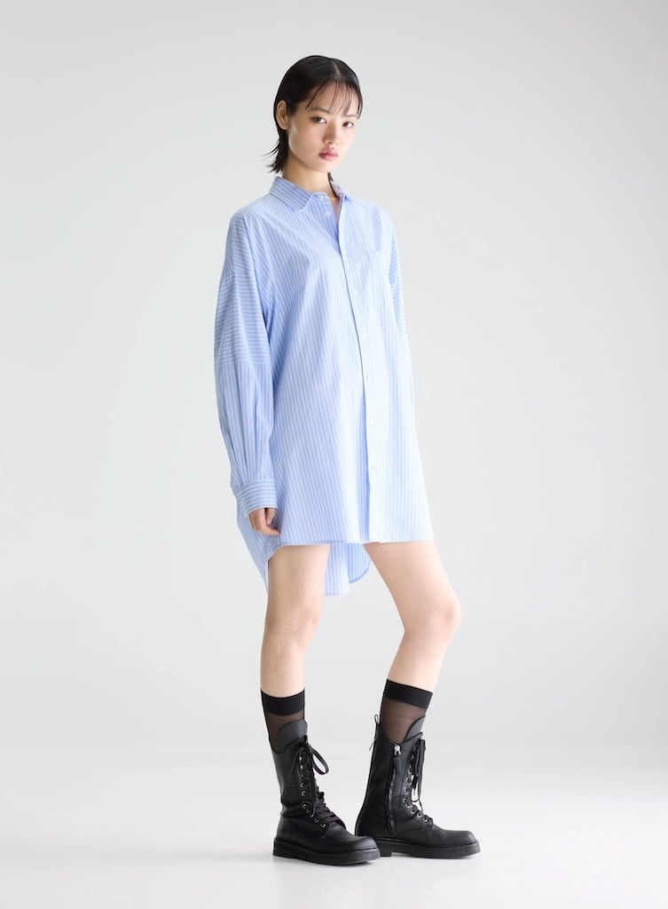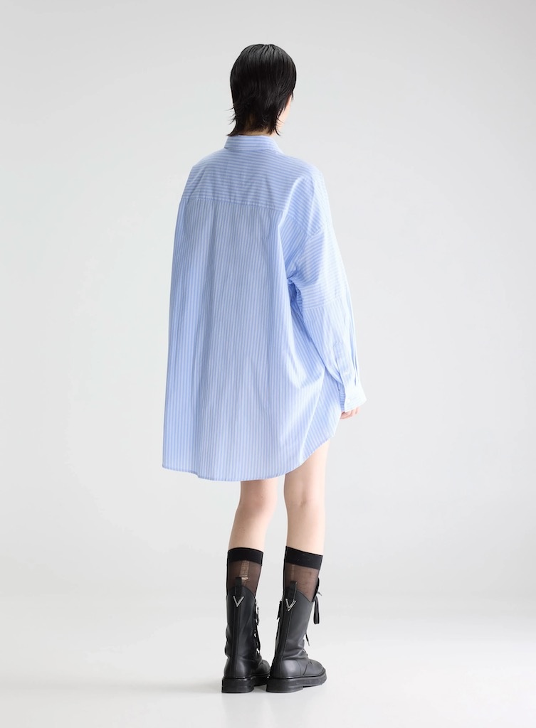 BelleroseJinner dress blue stripe €179,00 Incl. btwSize: *S/ML/XLToevoegen aan winkelwagenGratis verzending Vanaf €150,-Beschrijving+ Oversized shirt dress : Choose your usual size for the intended look or size down for a more fitted style. + Above-knee length + Dropped shoulders + Button-down front + Vertical and horizontal stripe mix + Single chest pocket + Curved high-low hem