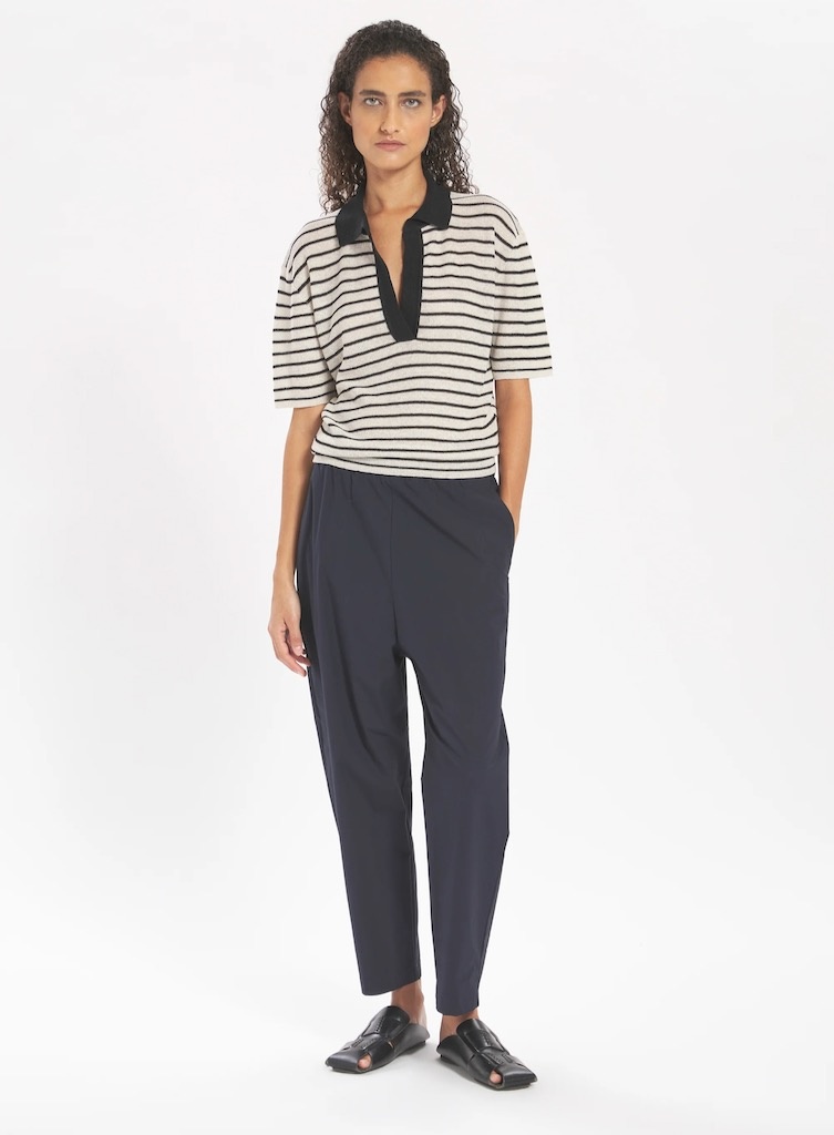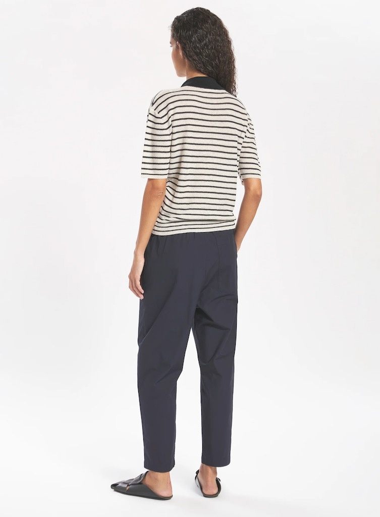 Barena VeneziaJoie Vion navy €209,00 Incl. btwColor: *NavySize: *3436384042Toevoegen aan winkelwagenGratis verzending Vanaf €150,-Beschrijving+ Mid rise + Relaxed fit + Two slashed pockets + One back patch pocket + Ankle length + Elastic waistband + The model is 179 cm and is wearing a size 36 + 97% CO 3% EL
