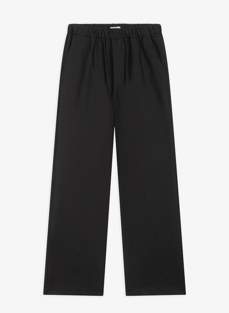 Barena VeneziaMariano flan pants nero €319,00 Incl. btwSize: *34363840Toevoegen aan winkelwagenGratis verzending Vanaf €150,-Beschrijving+ Mid-rise + Relaxed fit + Slashed pockets + Full straight length, long leg – Low crotch + Elastic waistband + 99% WV 1% EA