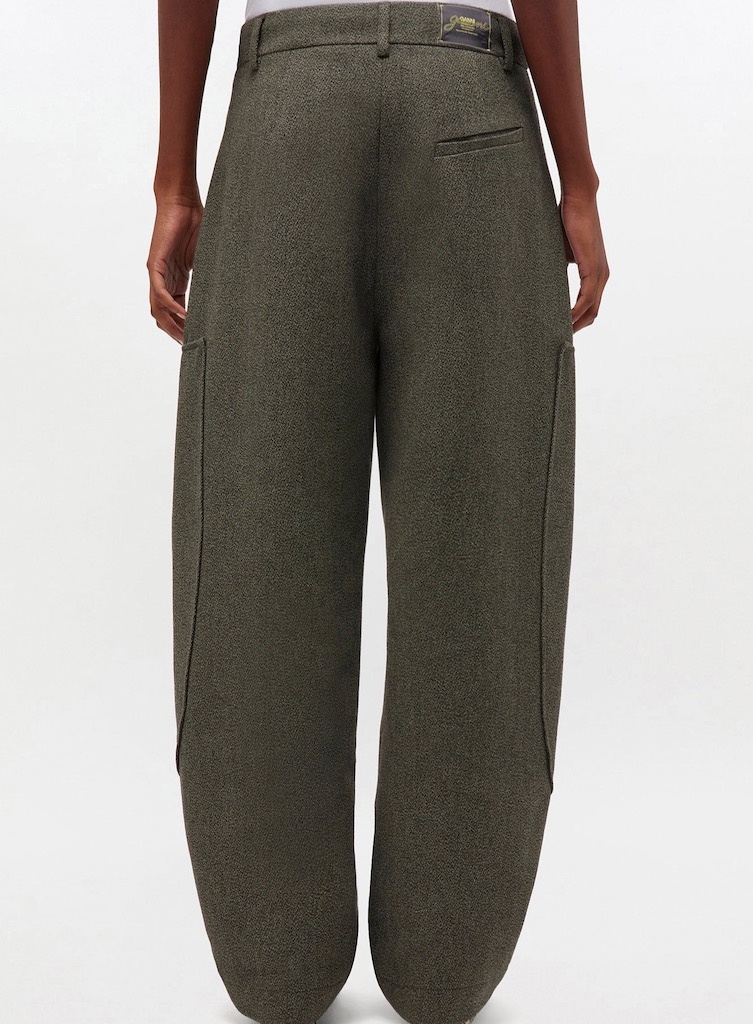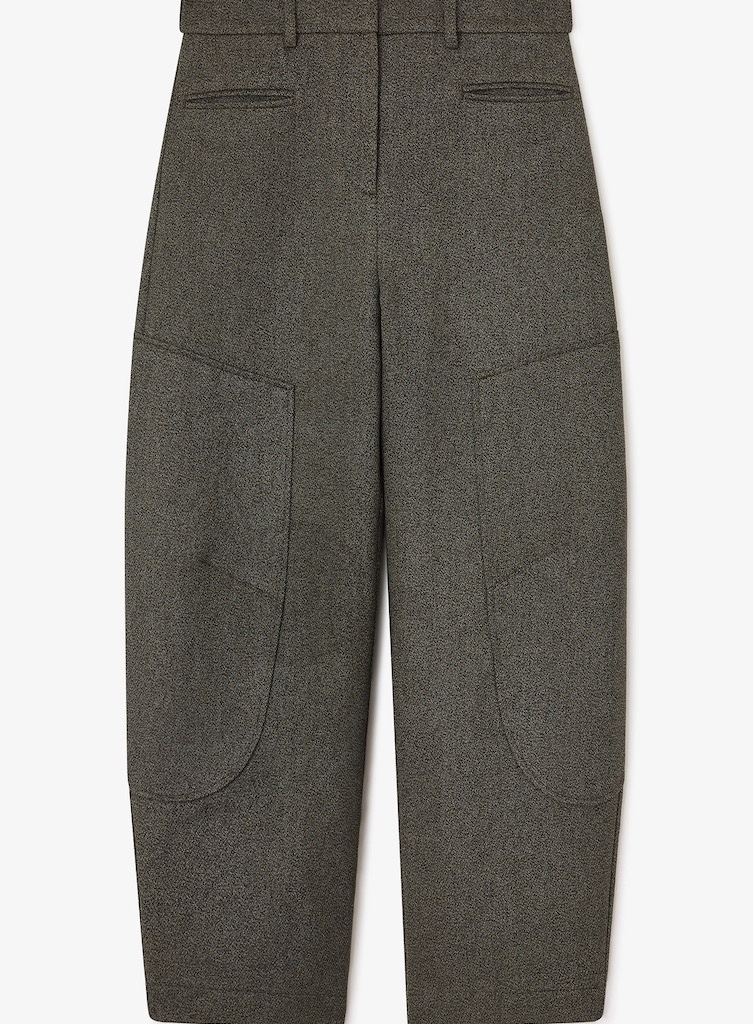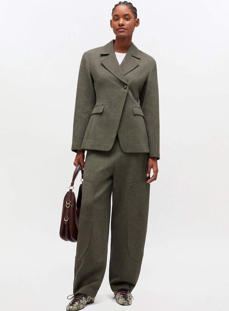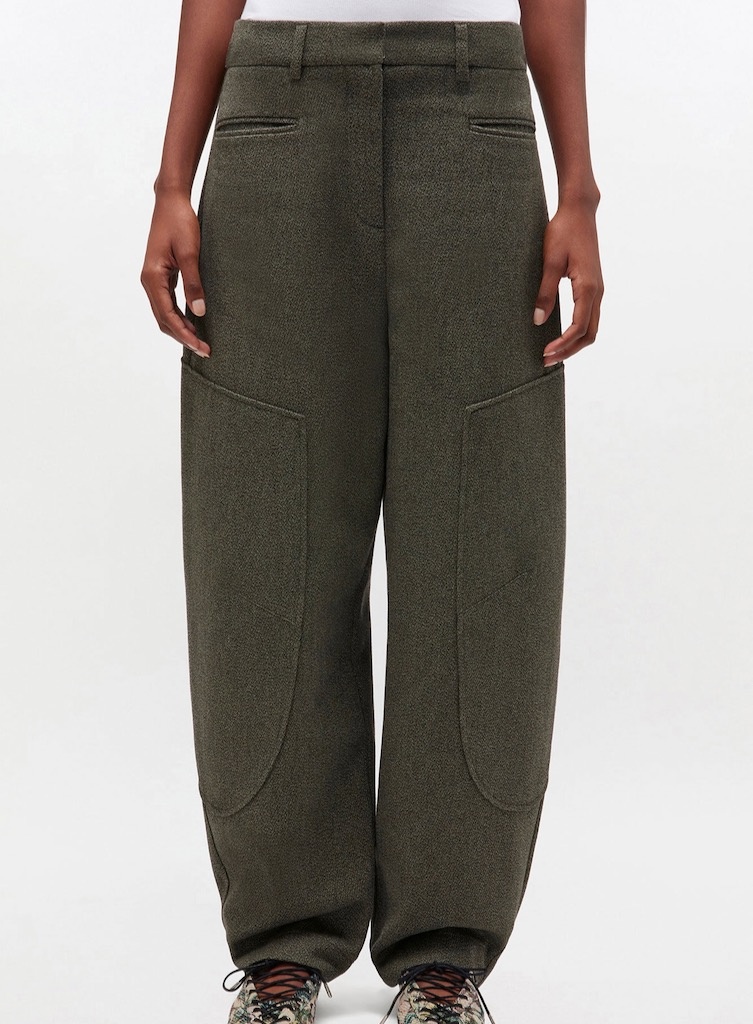 GanniMouline pants forest €395,00 Incl. btwSize: *3638Toevoegen aan winkelwagenGratis verzending Vanaf €150,-Beschrijving+ Lining composition: 100% Cotton + Hook and zip closure + Belt loops + 3 pockets + GANNI logo at the back pocket + Model is 180 cm and wears a size 36 + 58% organic cotton, 25% recycled wool, 13% recycled polyester, 2% recycled polyamide, 2% other