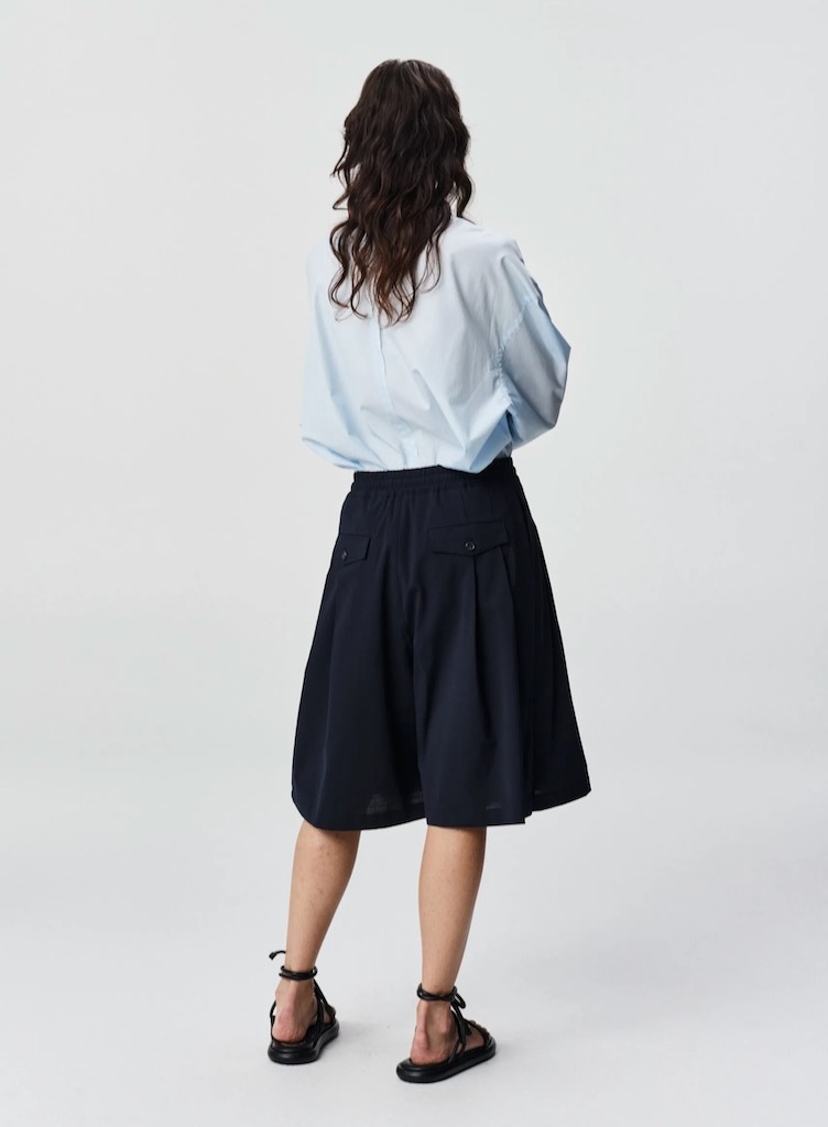 AdnymRaaz culot navy €275,00 Incl. btwSize: *XSSToevoegen aan winkelwagenGratis verzending Vanaf €150,-Beschrijving+ Shorts and skirt combined + Multiple pleats + Wide bottom leg + Fit is on size, for a more fitted look size down + 64% Polyester, 34% Viscose, 2% Elasthane + Hugo is 187cm, wearing size M, Liz is 176cm, wearing size XS
