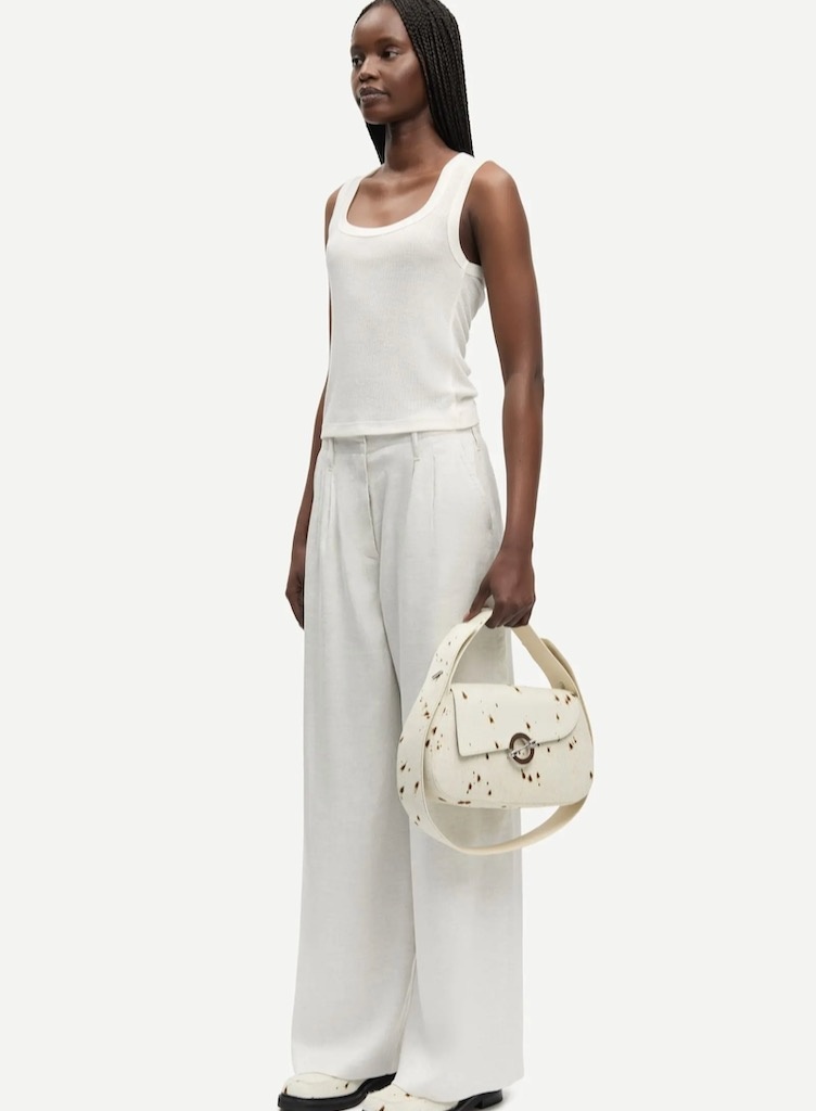 Samsoe SamsoeSadou tank top ecru €60,00 Incl. btwSize: *SMLXLToevoegen aan winkelwagenGratis verzending Vanaf €150,-Beschrijving+ Sleeveless jersey tank top + Slim fit + Square neck + The model is 175 cm and is wearing size S + 70% TENCEL™ Lyocell, 30% Wool