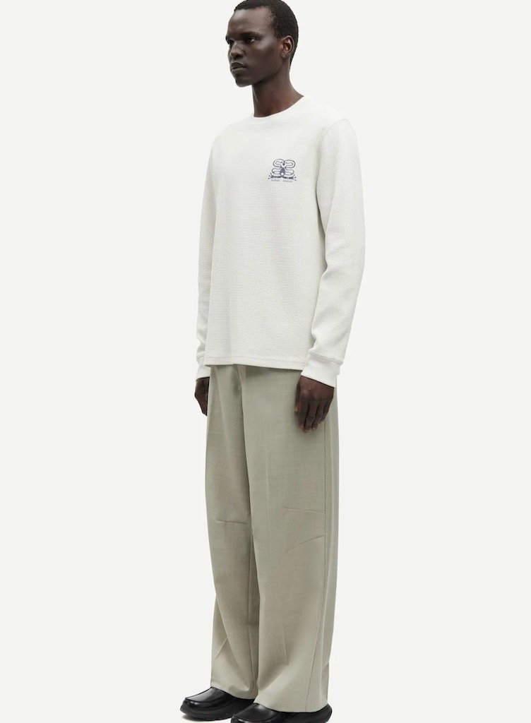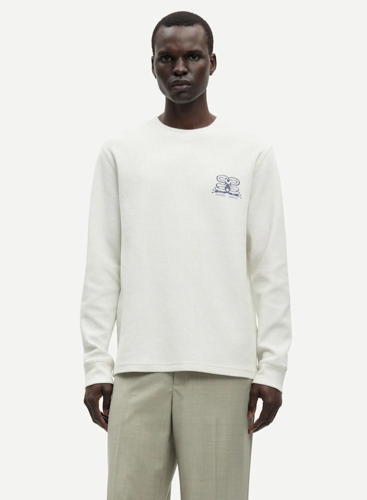 Samsoe SamsoeSafellow longsleeve ecru €95,00 Incl. btwSize: *MLSXLToevoegen aan winkelwagenGratis verzending Vanaf €150,-Beschrijving+ Long-sleeved jersey T-shirt + Rib-knitted cuffs and crew neck + Printed logo branding at the chest and back + The model is 188 cm and is wearing size L + 93% Organic Cotton, 7% Recycled Polyester