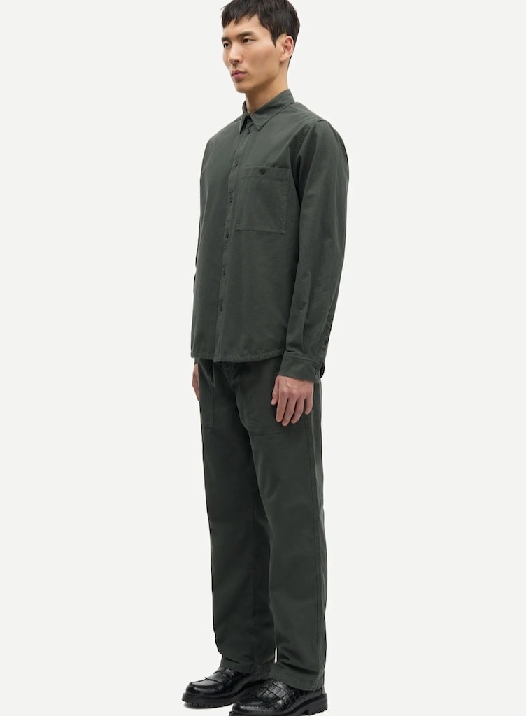 Samsoe SamsoeSajabari fly evergreen €140,00 Incl. btwSize: *SMLXLToevoegen aan winkelwagenGratis verzending Vanaf €150,-Beschrijving+ Regular fit and straight leg + Button and zipper closure at the fly + Elasticated waistband + Patch pockets on the front and buttoned patch pocket on the back + The model is 188 cm and is wearing size L + 100% Organic Cotton