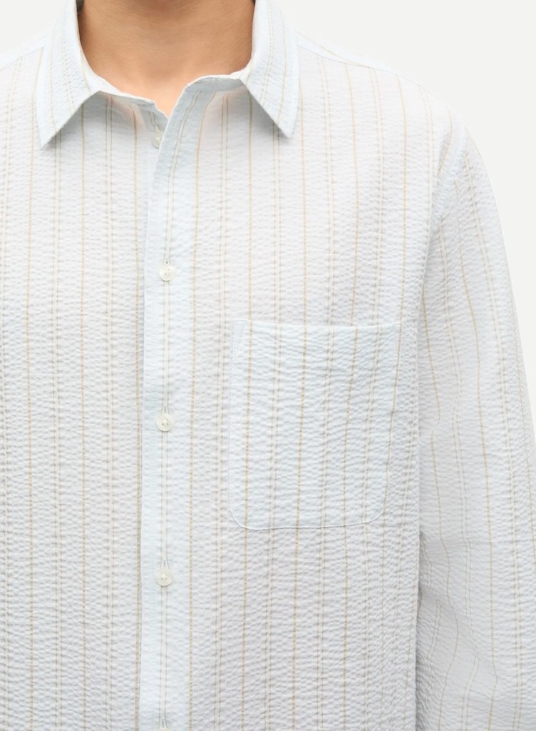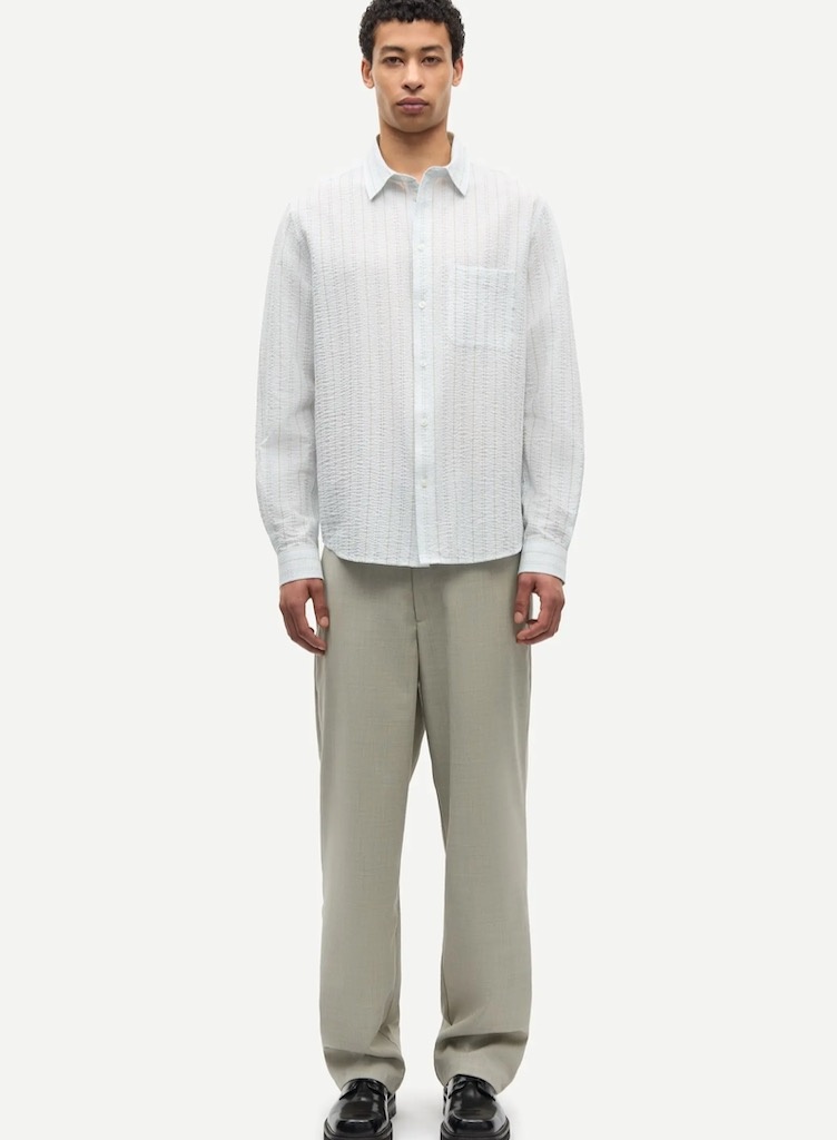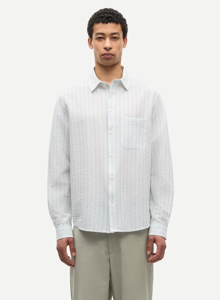 Samsoe SamsoeSaryan shirt skystripe €130,00 Incl. btwSize: *SMLXLToevoegen aan winkelwagenGratis verzending Vanaf €150,-Beschrijving+ Long-sleeved striped shirt + Regular fit + Button closure on the front and buttoned cuffs + Single patch pocket on the chest. +100% organic cotton + The model is 188 cm and is wearing size L