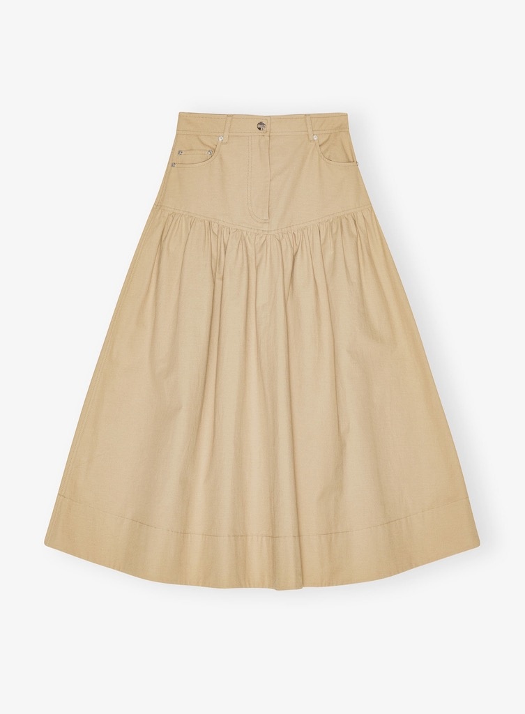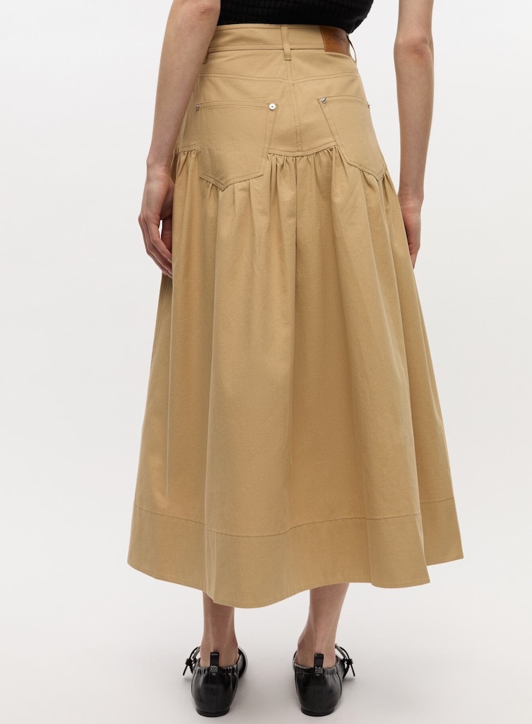 GanniSuiting long skirt khaki €345,00 Incl. btwSize: *36384042Toevoegen aan winkelwagenGratis verzending Vanaf €150,-Beschrijving+ Button and zip closure + Belt loops + 5 pockets + GANNI logo patch + Drop waist + 83% organic cotton, 17% linen