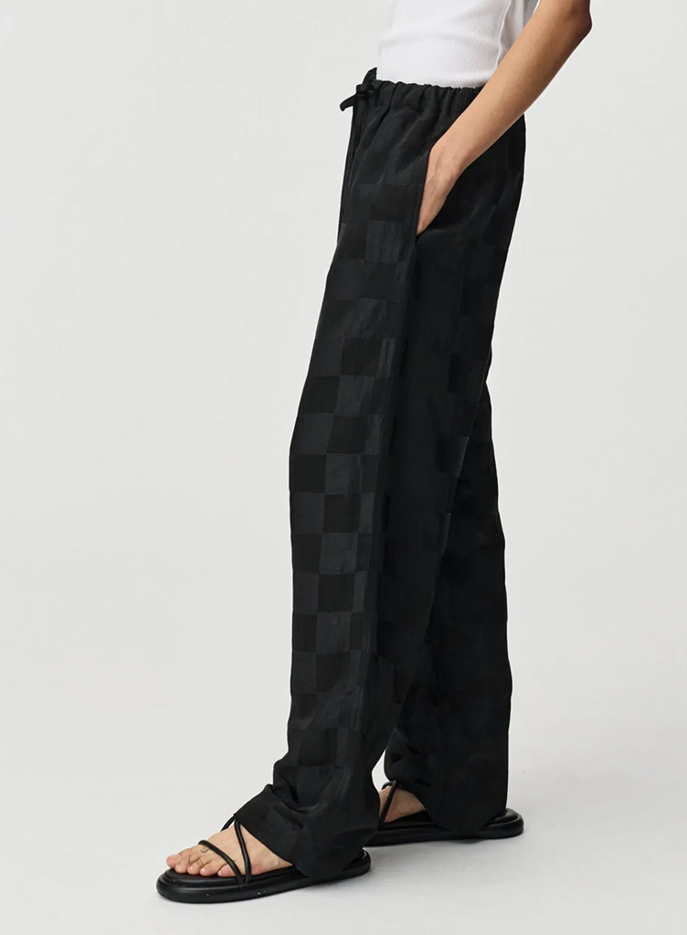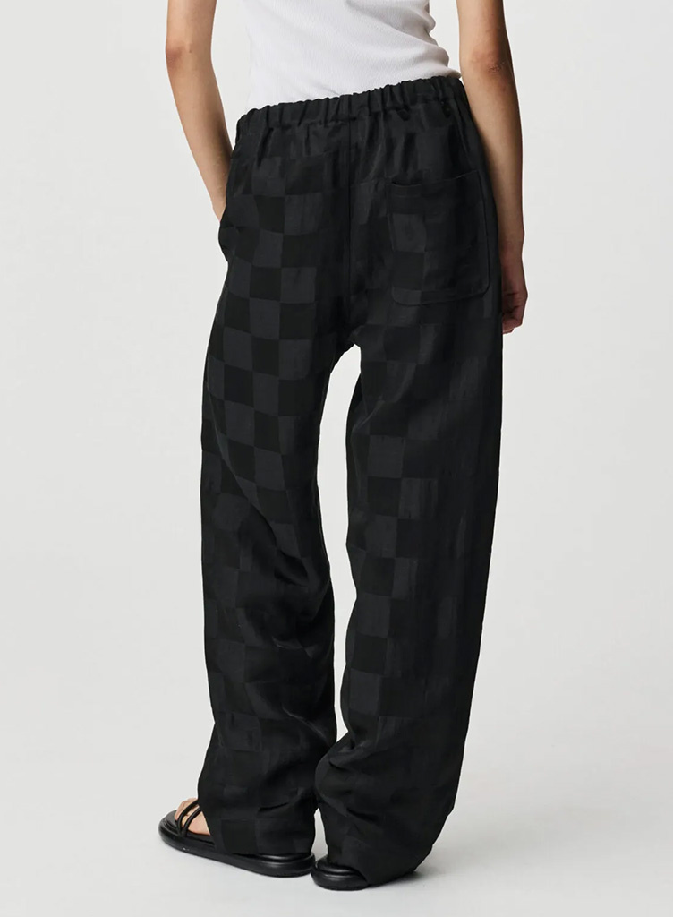 AdnymTir trouser black €295,00 Incl. btwSize: *XSSMToevoegen aan winkelwagenGratis verzending Vanaf €150,-Beschrijving+ relaxed fitted broek + elastische tailleband + stoffen lint + 48% linnen, 52% rayon + merk Adnyn