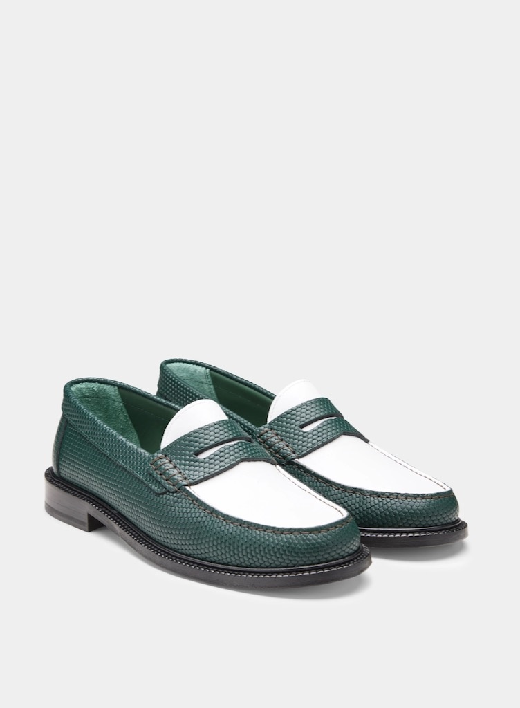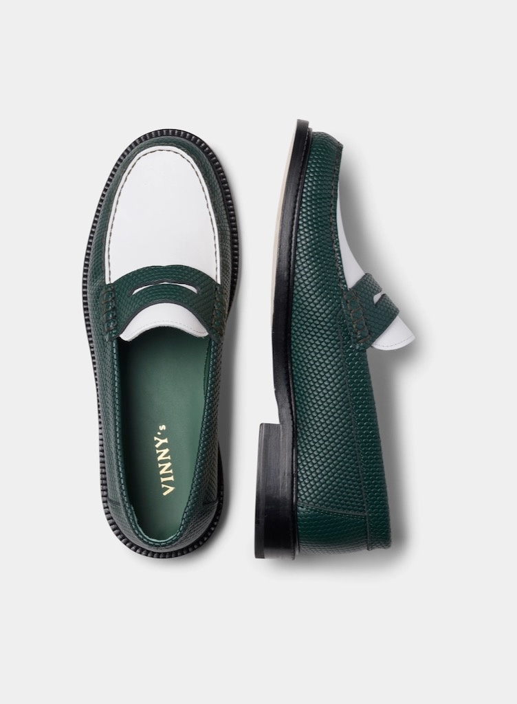 Vinny'sYARDEE mocasin gr €250,00 Incl. btwSize: *4142434445Toevoegen aan winkelwagenGratis verzending Vanaf €150,-Beschrijving+ Subtle flex with a twist + Deep green and white, A crisp contrast meets textured leather + Signature moc-toe stitch