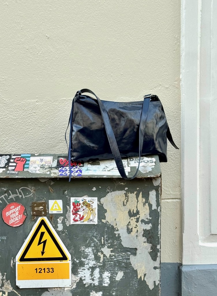 NONAZip pocket night €285,00 Incl. btwToevoegen aan winkelwagenGratis verzending Vanaf €150,-Beschrijving+ Worn crossbody or by shoulder + Slim, adjustable strap and an extra compartment inside + Rich blue patent cow leather (bit darker in real life) + Lined with 100% cotton in a natural beige + Handmade in Barcelona, Spain + 40cm x 6cm x 24cm